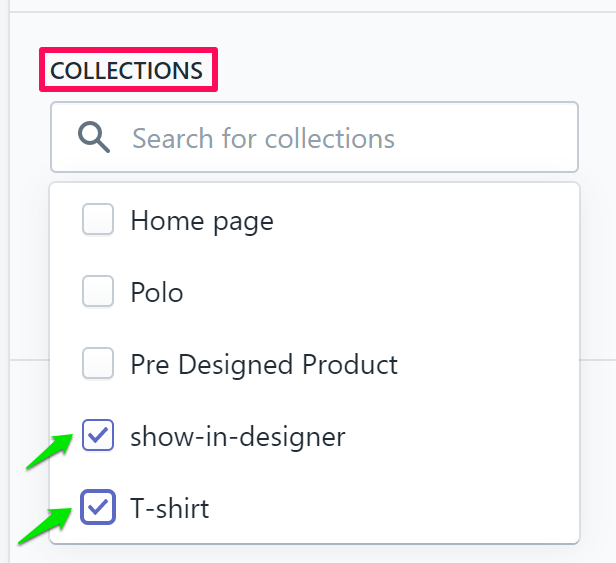 - Add categories under Collections displayed on the right side. Also, select “Show in Designer”