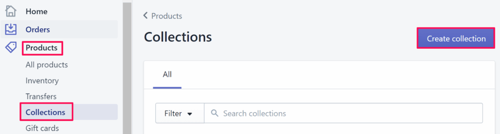 2. Go to Products and select “Collections”