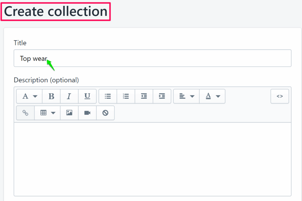 4. Under Create Collection, enter the title. Description and other details are optional.