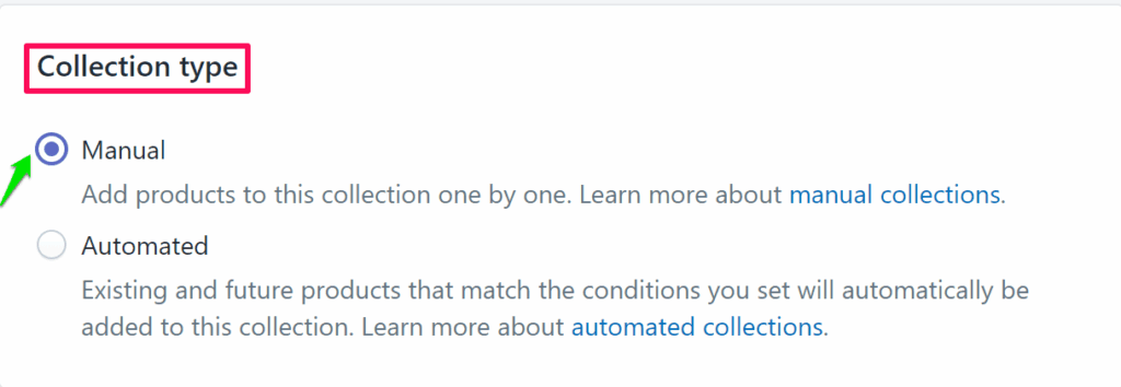 5. Scroll down and go to Collection Type. Enable the radio button for Manual.