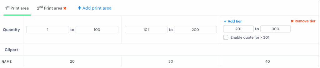 Now, we will add both the Quantity Tier Price, which we get from the 1st Print area, and the 2nd Print area