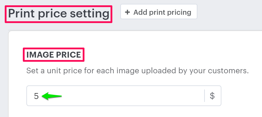 7. Under the Image price, set the price in the text box.