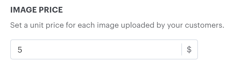 Set a price for adding an image. The price will be added to the decoration price for each image added to the product.