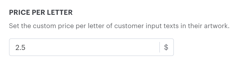 7. Under Price Per Letter, set the price in the text box.