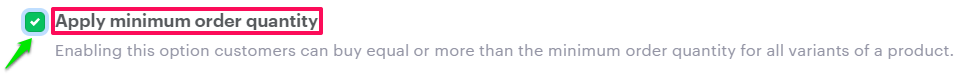 5. Enable the checkbox Apply minimum order quantity and click “Save.”