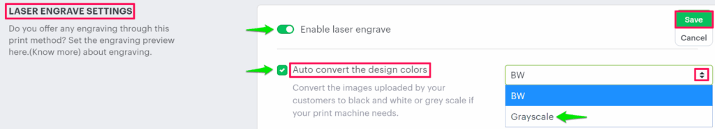 4. The print method setting page will appear. In the Laser engrave settings, toggle the button of Enable laser engrave.