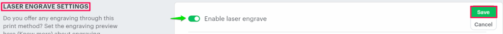 4. The print method setting page will appear. In the Laser engrave settings, toggle the button of Enable laser engrave.