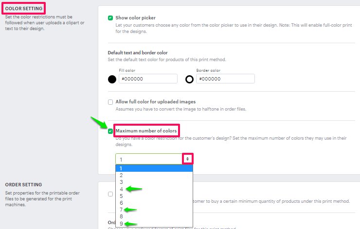 This feature is mostly used for screen printing. You can set the maximum number of colors to be used while customizing the product.