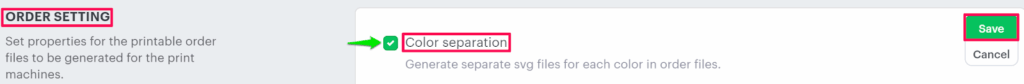 4. The Print method setting page will appear. Scroll down to find the Order setting. Move to the right and select the Color separation checkbox.