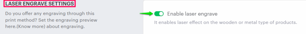 4. A new page will appear, scroll down to find Laser engrave settings and toggle the button of Enable laser engrave.