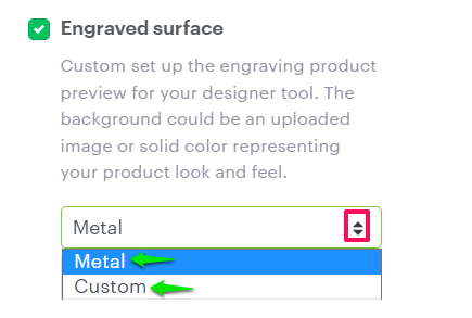 - Custom – To show the realistic engraving preview for the different product surfaces like leather, stone, acrylic, etc., you can select the custom option.