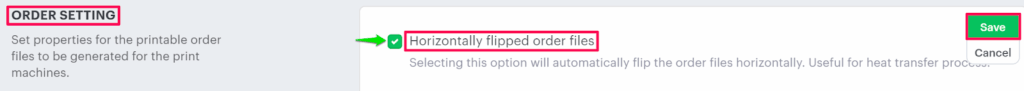 4. The Print method setting page will appear, and scroll down to find Order settings. Move to the right and select the Horizontally flipped order files checkbox.