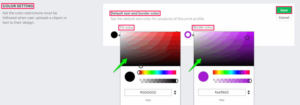 5. Under Default text and border color, pick a color of Fill color and Border color from the color picker.