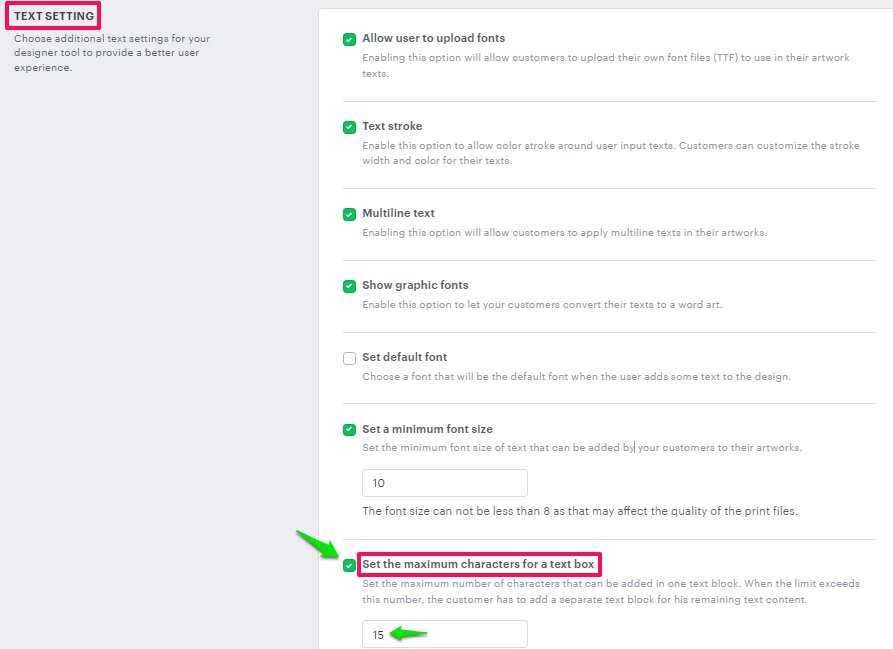 4. The Print method setting page will appear, scroll down to find the Text setting, and enable the checkbox of Set the maximum characters for a textbox. In the text box, enter the maximum number of characters for a text box.