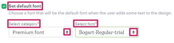 5. Enable the checkbox of the Set default font. From the dropdown of Select Category and Select Font, select the font’s category and the font, respectively.