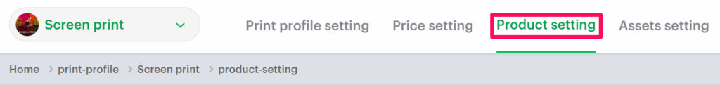 4. Select the Product Setting tab.