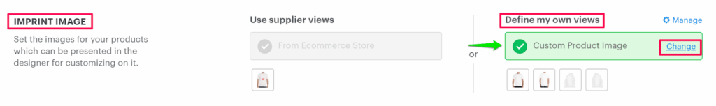 • In the Imprint Image section, under Define my own views, enable Custom Product Image.