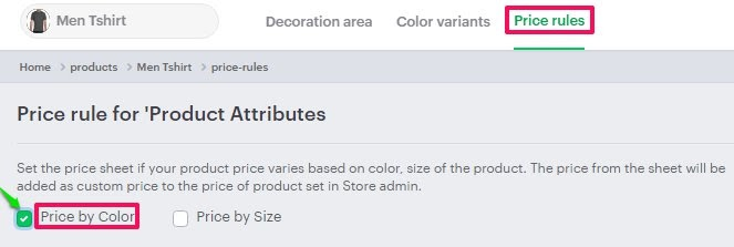 4. Go to the Price Rules tab and check the box labeled “Price by Color.”