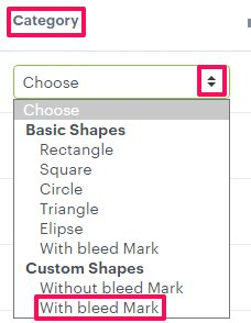 6. Under Category, open the dropdown and select “With Bleed Mark”.