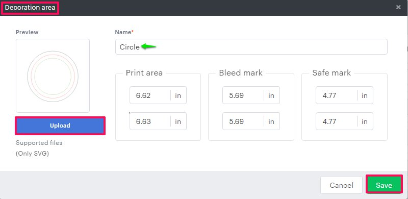 Steps to Upload Custom Shape Decoration Area with Bleed Mark