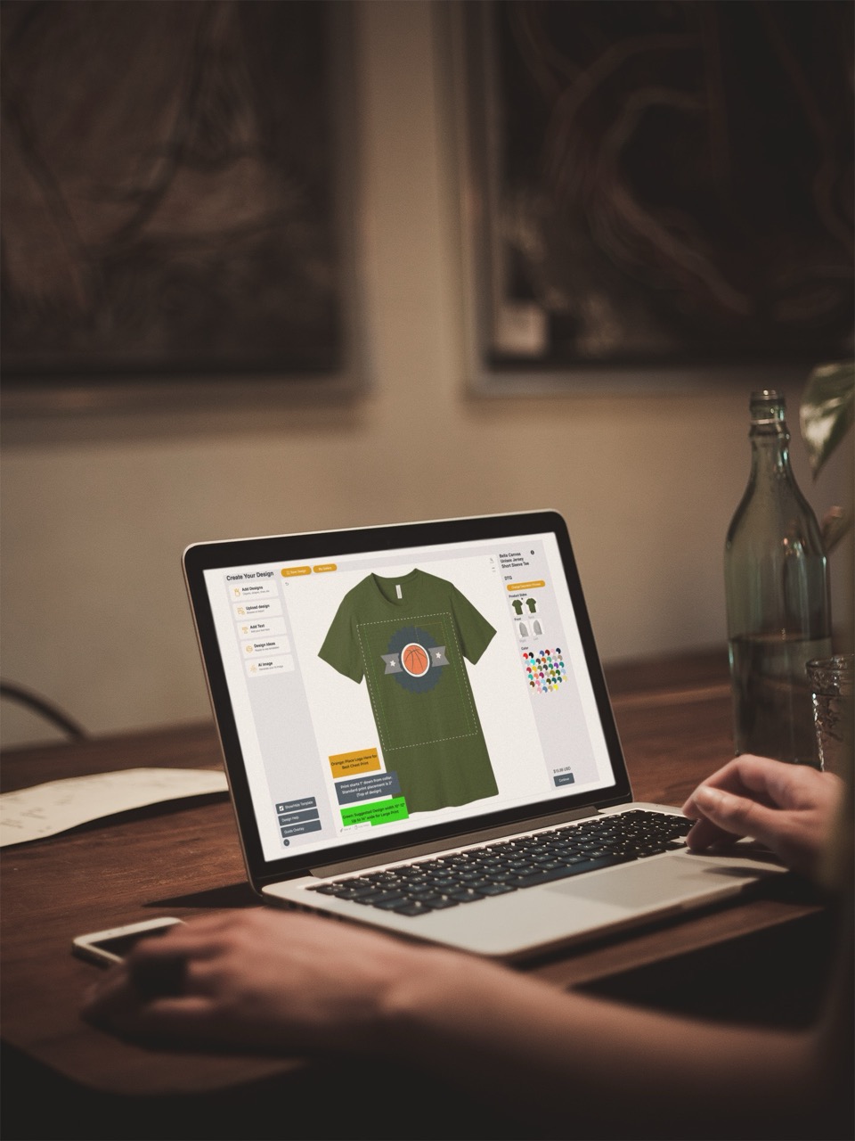 Multi-side design support (front, back, sleeves, custom areas)